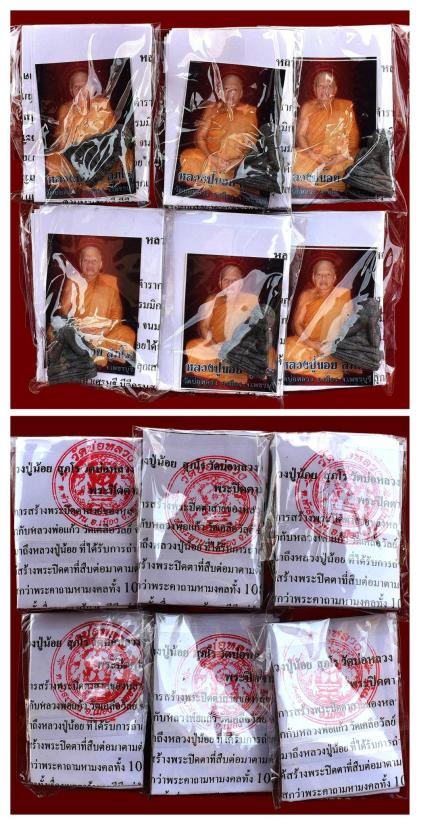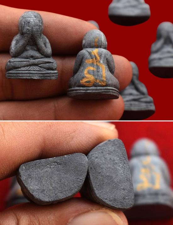 ชุด 6 องค์...พระปิดตามหาเศรษฐี (ลอยองค์) รุ่นแรก เนื้อผงมวลสาร หลังจารยันต์ ปี 2552 หลวงปู่น้อย วัดบ่อหลวง จ.เพชรบุรี พร้อมซองรูปใบฝอยเดิมจากวัด สภาพพระตามรูปที่ลงทุกประการ (ขนาดประมาณ 2 x 2.7 ซม.)