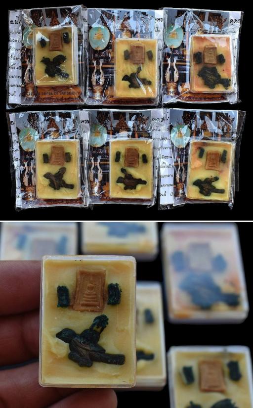 ชุด 6 ตลับ...สีผึ้งพญาการเวก ปี 2556 หลวงปู่ชั้น วัดดอนสนวน จ.ชัยนาท พร้อมซองรูปใบฝอยเดิมจากวัด สภาพพระตามรูปที่ลงทุกประการ (ขนาดกล่องตลับประมาณ 4.1 x 3 ซม.)