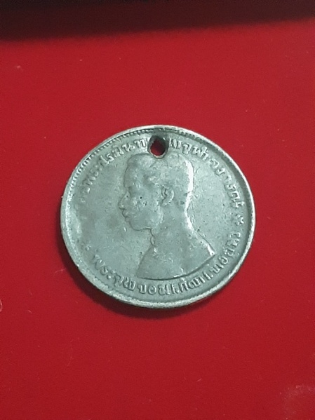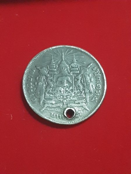 เหรียญเงินหนึ่งบาท ร .5 หลังตราแผ่นดิน ขอบสตางค์ (เคาะเดียว)