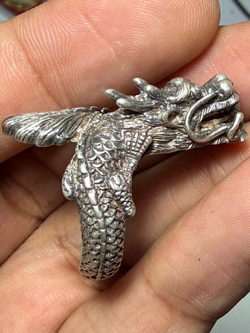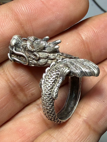 แหวนมังกร เนื้อเงินแท้985% วงใหญ่สวยๆ เคาะเดียว