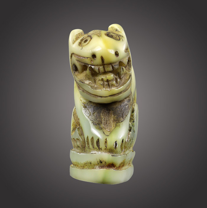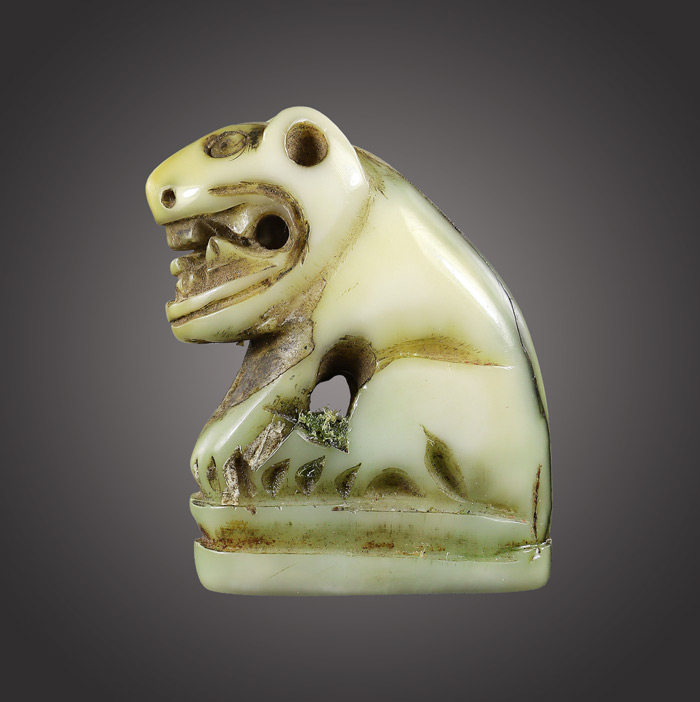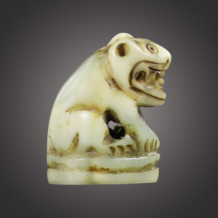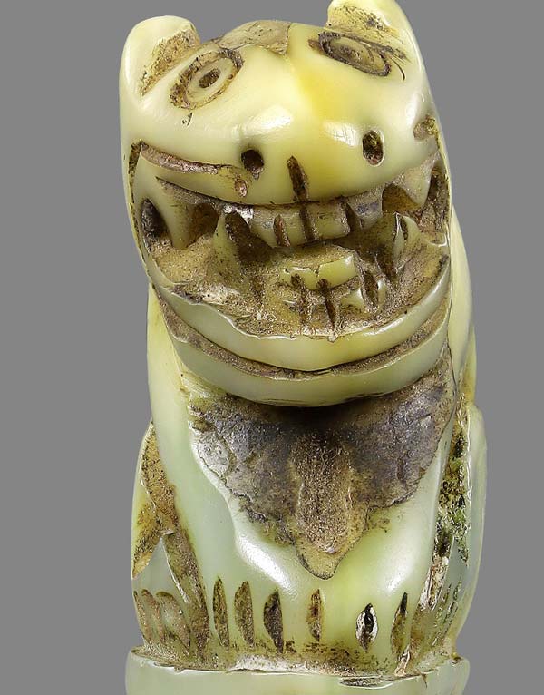 เขี้ยวแกะเป็นรูปเสือ(เขี่ยวหมู) ไม่ทราบเกจิที่สร้าง พร้อมอุดสีผึ้งเขียวใต้ฐาน สภาพยังสมบูรณ์
