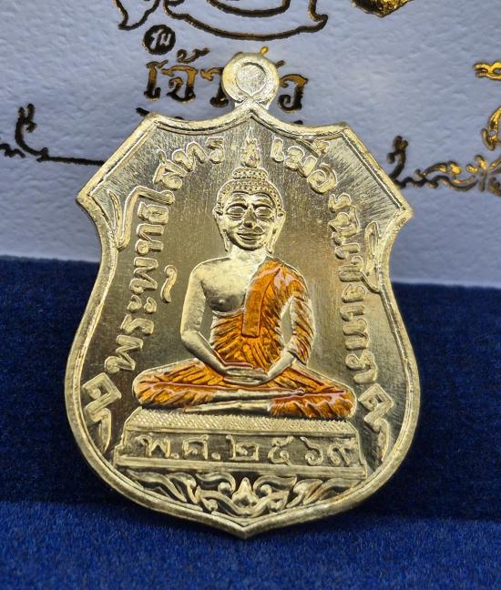 เหรียญโล่ หลวงพ่อโสธร รุ่นเจ้าสัว ปลุกเสกติดต่อกัน5วันเกจิ500กว่ารูป เนื้อทองทิพย์ลงยาจีวร เลข 347