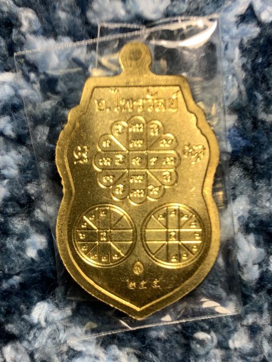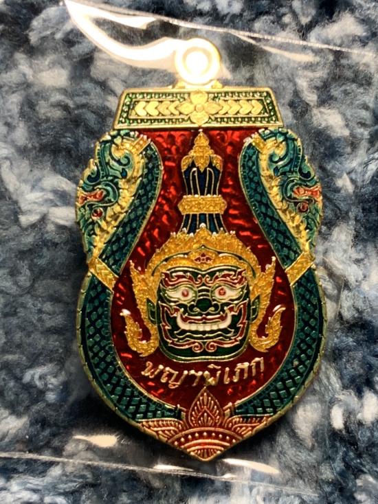 เหรียญพญาพิเภกกลับดวง รุ่นเจริญลาภ พระอาจารย์ไพรวัลย์ วัดหาดทรายแดง จ.ตราด เนื้อฝาบาตรลงยาแดงนิยม เลข255 |