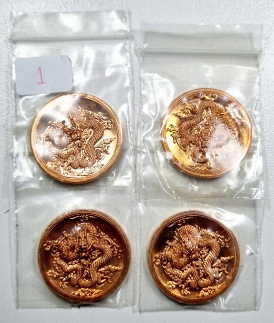 เหรียญพญามังกรทองจักรพรรดิ์ วัดไตรมิตรวิทยาราม เนื้อทองมหาชนวน4หรียญ (1)