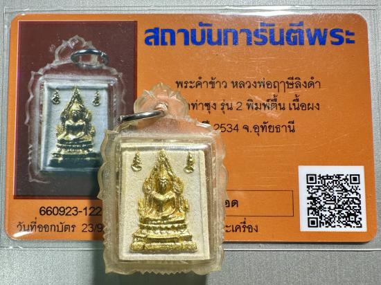 พระคำข้าว หลวงพ่อฤาษีลิงดำ วัดท่าซุง จ.อุทัยธานี เนื้อผงปิดทองเดิมๆ รุ่น2 ปี พ.ศ.2534 สภาพสวยเลี่ยมวินเทจ จัดส่งพร้อมบัตรรับรองครับ