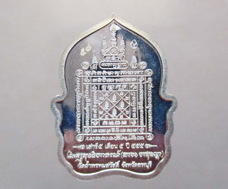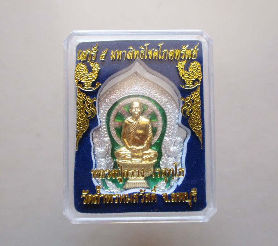 เหรียญนั่งพาน รุ่นเสาร์ 5 มหาสิทธิโชคโภคทรัพย์ หลวงปู่สรวง วรสุทฺโธ วัดถ้ำพรหมสวัสดิ์ จ.ลพบุรี พ.ศ.2555 เนื้อเงินลงยาสีเขียวหน้าทองทิพย์ กล่องเดิม พร้อมบัตรรับรองพระแท้การันตีพระ !!