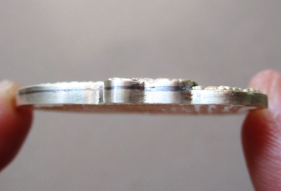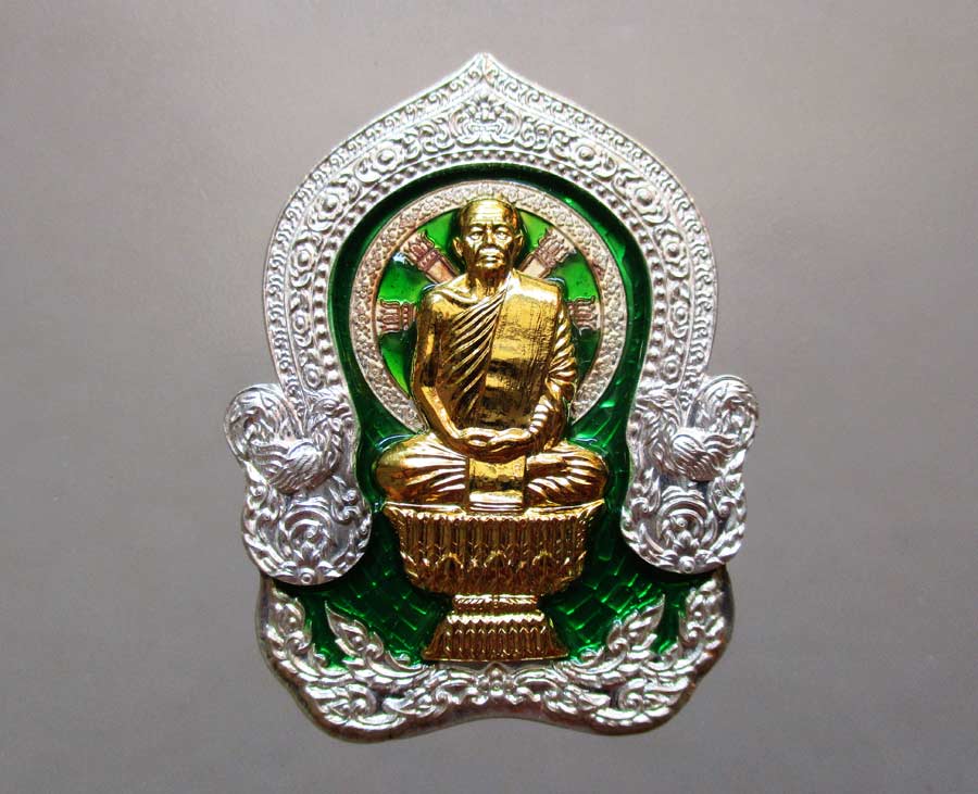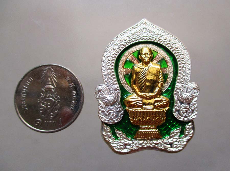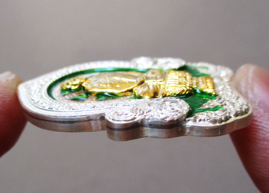 เนื้อเงินลงยาสีเขียว หน้าทองทิพย์ ขนาด 3 ซ.ม. X 4 ซ.ม.