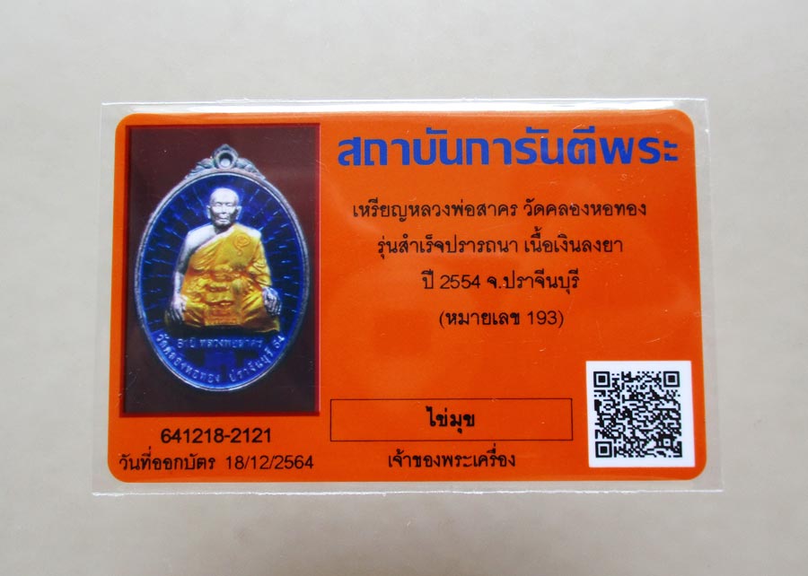 พร้อมบัตรรับรองพระแท้จากสถาบันการันตีพระ !!