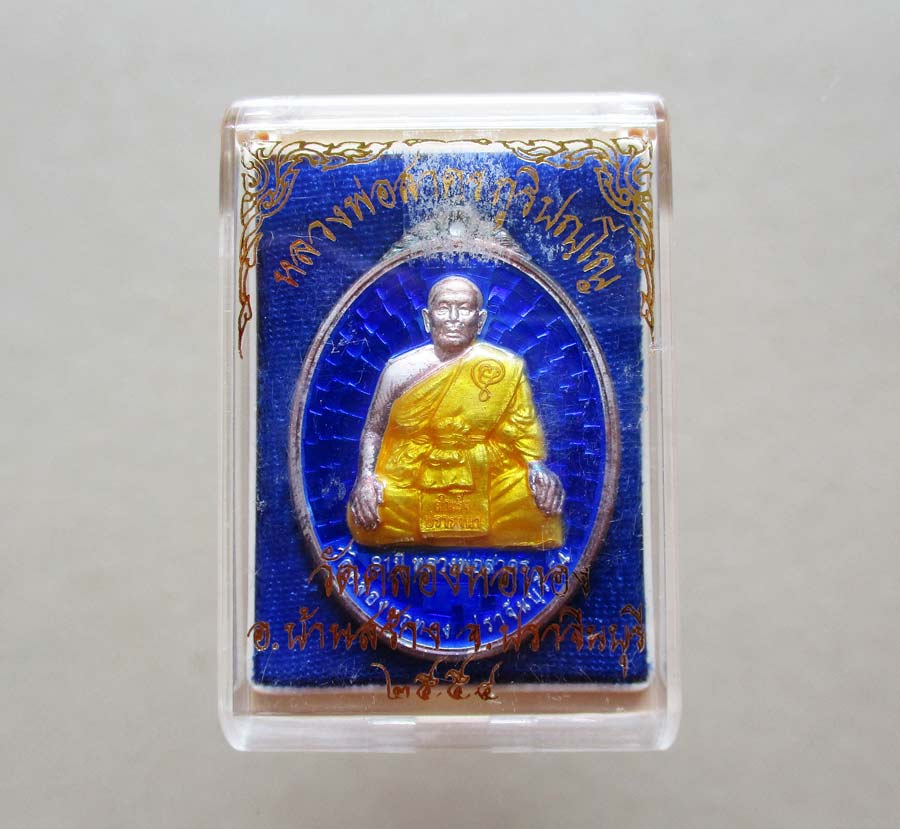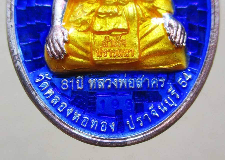 เหรียญคันฉ่อง รุ่น สำเร็จปราถนา หลวงพ่อสาคร วัดคลองหอทอง จ.ปราจีนบุรี พ.ศ.2554 เนื้อเงินลงยาสีน้ำเงิน ตอกโค๊ต ตอกเลข กล่องเดิมๆ !!