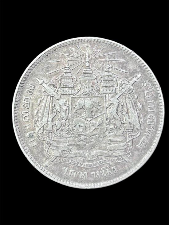 เคาะแรกแดงครับ เหรียญบาทหนึ่ง เนื้อเงิน ร.5 กรุงสยาม หลังตราแผ่นดิน ไม่มี ร.ศ. สวยๆครับ