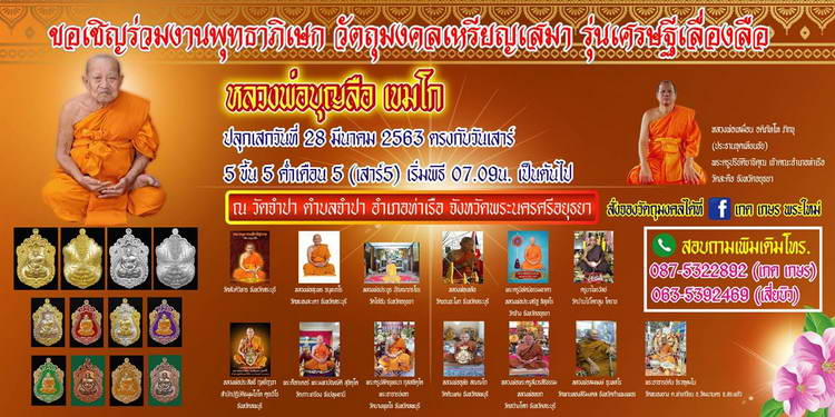 2-57 วัดใจ 100 ยกคู่ เหรียญเสมา เศรษฐี เลื่องลือ หลวงพ่อบุญลือ เขมโก วัดจำปา ท่าเรือ จ.อยูธยา 2563 ทด.ผิวไฟ.735+ทด.รุ้ง.267 กล่องเดิม