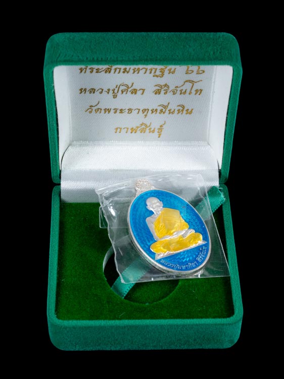 เหรียญรูปไข่ หลวงปู่มหาศิลา สิริจันโท วัดพระธาตุหมื่นหิน จ.ก าฬสินธุ์ รุ่นที่ระลึกมหากฐิน พ.ศ.2566 เนื้อเงินลงยาสีน้ำเงิน ตอกโค๊ต ตอกเลข สภาพเหรียญสวย กล่องกำมะหยี่เดิมๆ !!