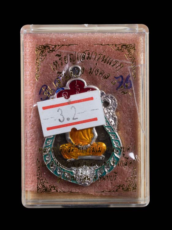 เนื้อชนวนมวลสารหน้ากากเงิน ขอบเงิน ลงยาสีฟ้า