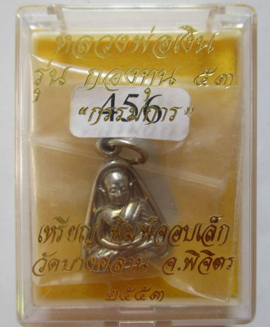 เหรียญจอบเล็กหลวงพ่อเงินบางคลาน กองทุน ๕๓ เนื้ออัลปาก้า กรรมการ ปี 2553 หมายเลข 456