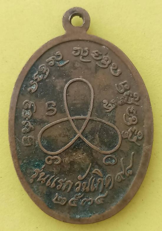 ลพ.ปัน วัดแม่ยะ ตาก เหรียญขอบเกลียวเชือก รุ่นแรกวันเกิค๙๘ ปี๓๔ สภาพใช้ หลังยันต์ใบพัด