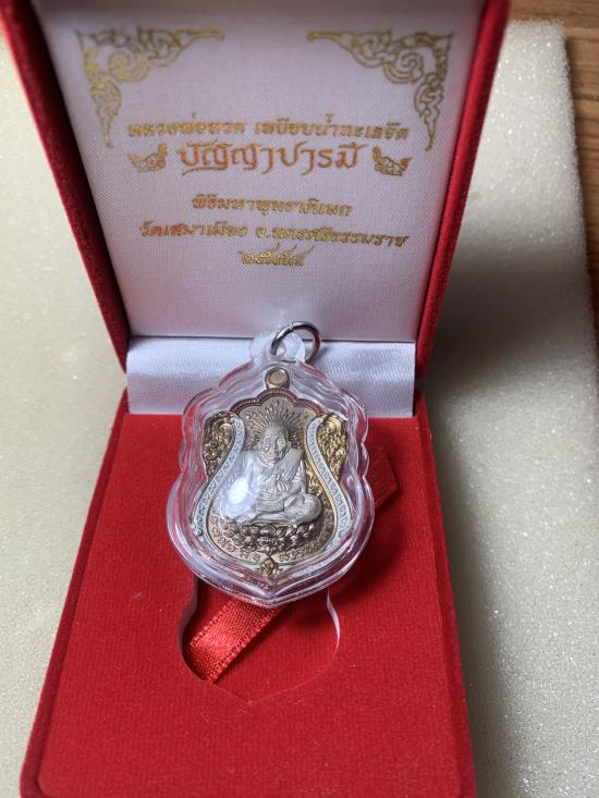 เหรียญหลวงปู่ทวด รุ่นปัญญาบารมี วัดเสมาเมือง จ นครศรีธรรมราช เนื้อนวะ หน้ากา กเงิน เคาะเดียว 500 (จอง 1200) สร้างเพียง 999 เหรียญ องค์นี้พร้อมเลี่ยมครับ |