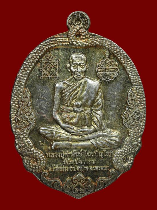 เหรียญ หลวงปู่คำพันธ์ โฆสปัญโญ เนื้อเงิน กว้าง 2.5*3.45 cm. วัดโฆสมังคลาราม จ.นครพนม ปี 2557