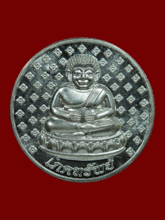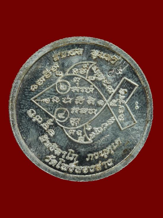 เหรียญ พระสังกัจจายน์โภคทรัพย์ เนื้อเงิน 3 cm. วัดโพธิ์ทองล่าง หลัง ยันต์ปลาตะเพียน ลาภผลพูนทวี