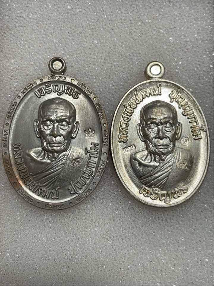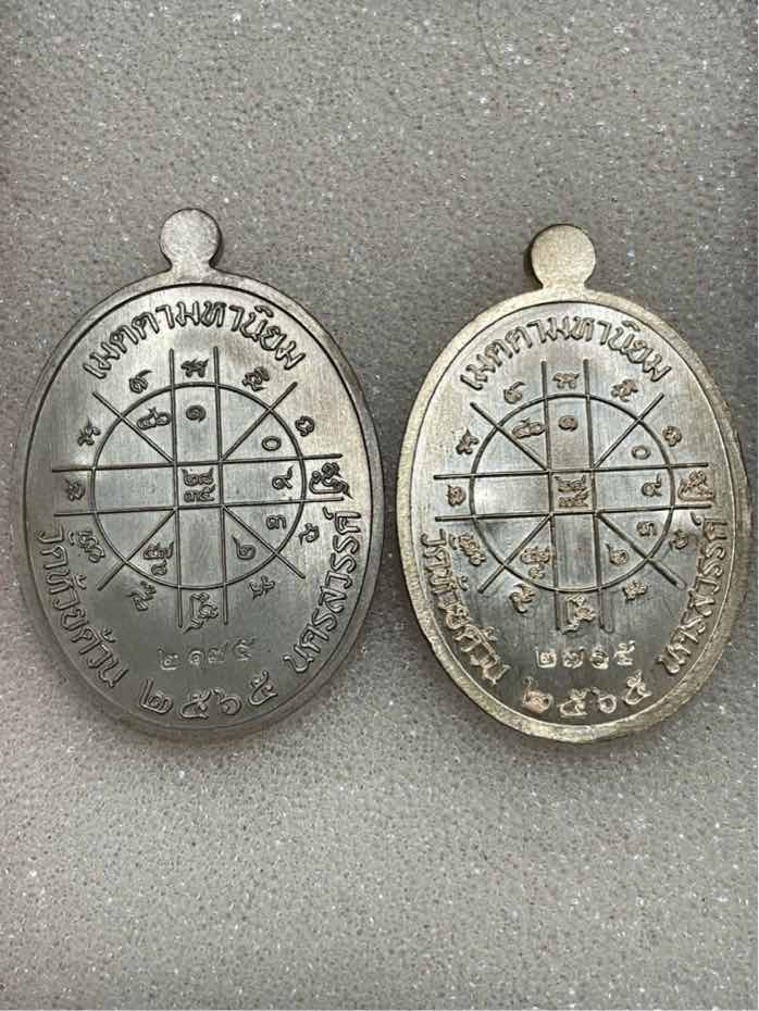 100.- ems ยกคู่ 2 เหรียญ เหรียญเจริญพร3 ปี 2565 วางศิลาฤกษ์ มหาเจดีย์ หลวงพ่อพัฒน์ วัดห้วยด้วน จ.นครสวรรค์ ไม่ทราบเนื้อ (คล้าย นวะโลหะ) สวยเดิมคากล่อง ตอกโค๊ด ตอกเลข