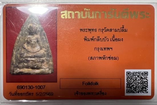 ***พระกรุวัดสามปลื้ม พิมพ์กลีบบัว เนื้อผง พร้อมบัตรรับรอง***