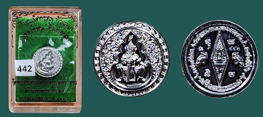 (เนื้อปีกเครื่องบิน-แจกในพิธี)เลข 442 เหรียญเม็ดกระดุม หัวแหวน เวสสุวรรณ ยันต์นะเศรษฐี หลังยันต์อกเลาพระพุทธชินราช : สาริกาคู่