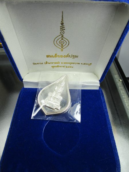 เหรียญสมเด็จองค์ปฐม วัดเขาวง ถ้ำนารายณ์ ลพบุรี หลวงตาวัชรชัย สายวัดท่าซุง เนื้อเงิน ปี 2558