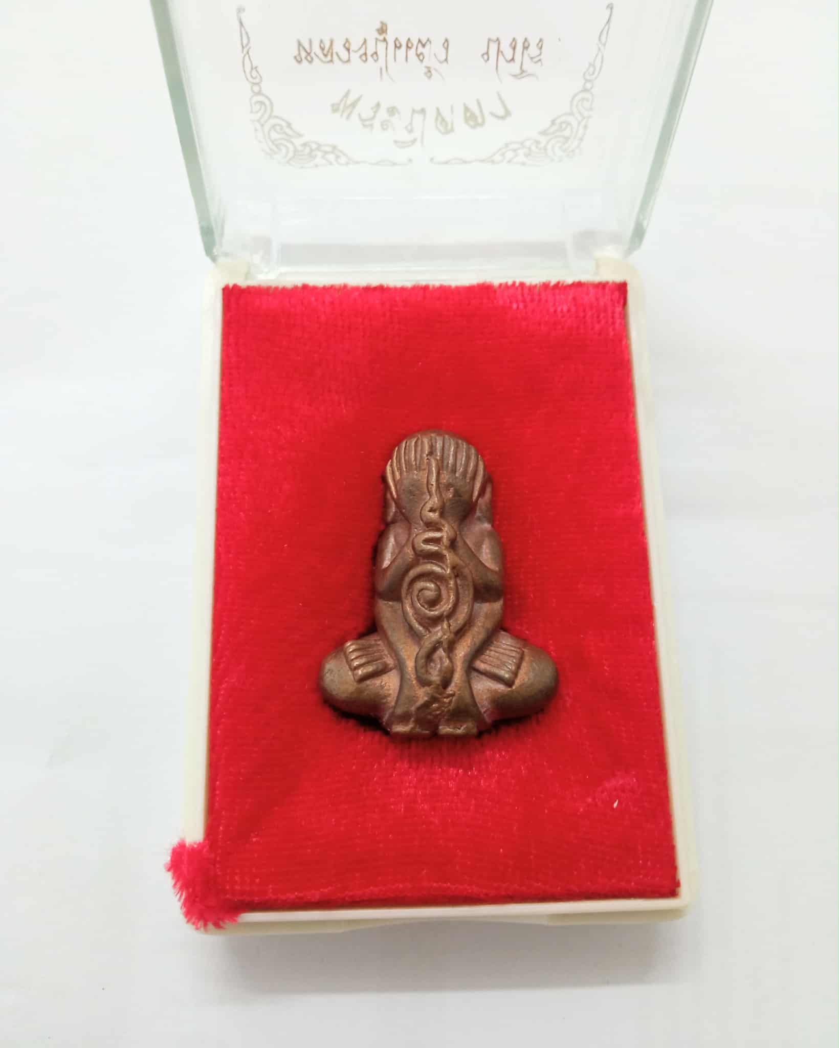หลวงปู่แผ้ว ปวโร พระปิดตามหาอุตต์ เนื้อทองแดงเถื่อน รุ่นแรก ปี 2547 ปีเดียวกับใบขี้เหล็กรุ่นแรก + กล่องเดิม จำนวนการสร้าง 2,500 องค์