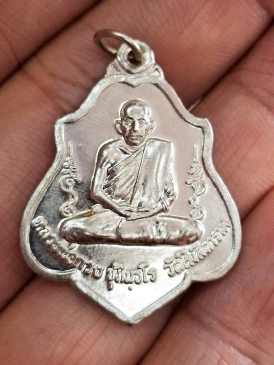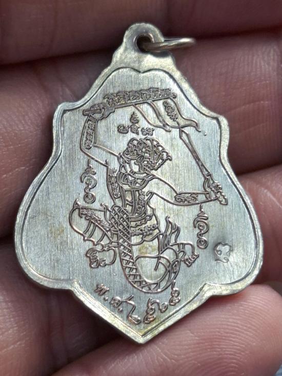 หลวงพ่อกวย วัดโฆตาราม หลังหนุมาน ปี 65 รุ่น ศิษย์มีครู เนื้ออัลปาก้า บล็อคสายฝน ด้านหลัง ปี 2565 กล่องเดิม