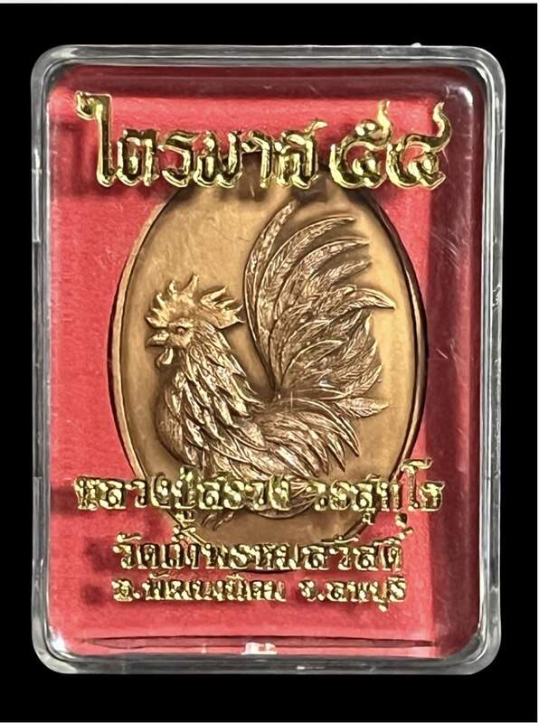 เคาะเดียวครับ เหรียญไก่ หลวงปู่สรวง วรสุทโธ ไตรมาส 54 วัดถ้ำพรหมสวัสดิ์ จ. ลพบุรี เนื้อทองแดงรมซาติน หมายเลข 1640 สภาพสวยเดิม พร้อมกล่องเดิม