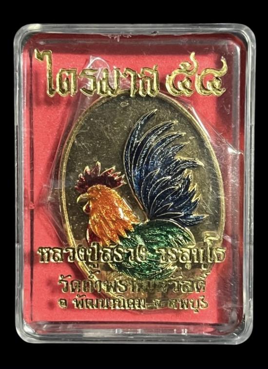 เคาะเดียวครับ เหรียญไก่ หลวงปู่สรวง วรสุทฺโธ ไตรมาส 54 วัดถ้ำพรหมสวัสดิ์ อ.พัฒนานิคม จ.ลพบุรี เนื้อทองแดงกะไหล่ทอง หมายเลข 1433 สภาพสวยเดิม พร้อมกล่องเดิม