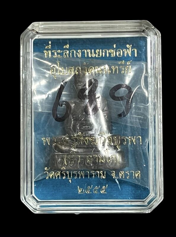 รูปหล่อครึ่งซีก หลวงปู่บัว เนื้อนวะโลหะ หมายเลข ๖๘๙ ที่ระลึกในงานยกช่อฟ้าอุโบสถวัดนนทรีย์ ปี ๒๕๕๕ สภาพสวยเดิม พร้อมกล่องเดิม