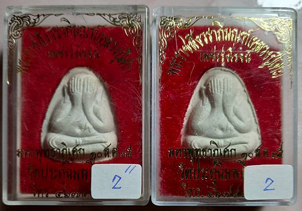 2,เคาะเดียวแดงสบายใจครับ พระปิดตาวัดประดู่ฉิมพลี รุ่นเพชรรุ่งโรจน์ พิมพ์ปลดหนี้หลังยันต์นะ ฝังตะกรุดเงิน 2 ดอก และ พิมพ์ปลดหนี้หลังยันต์นะ ไม่มีตะกรุด ปี 2535 ผสมผงเก่าหลวงปู่โต๊ะน่าบูชาครับ