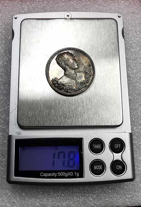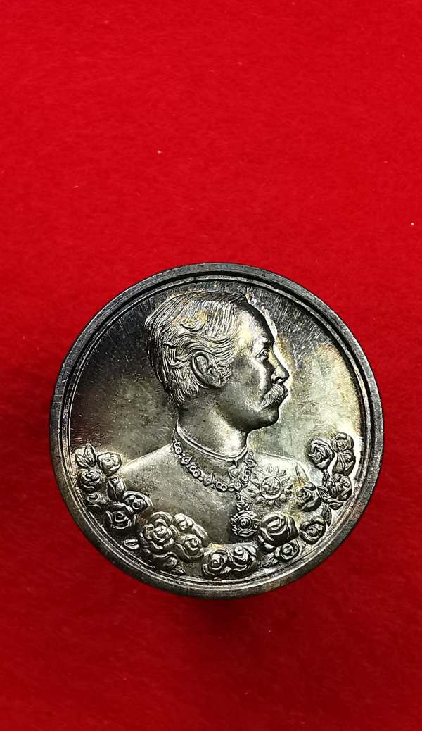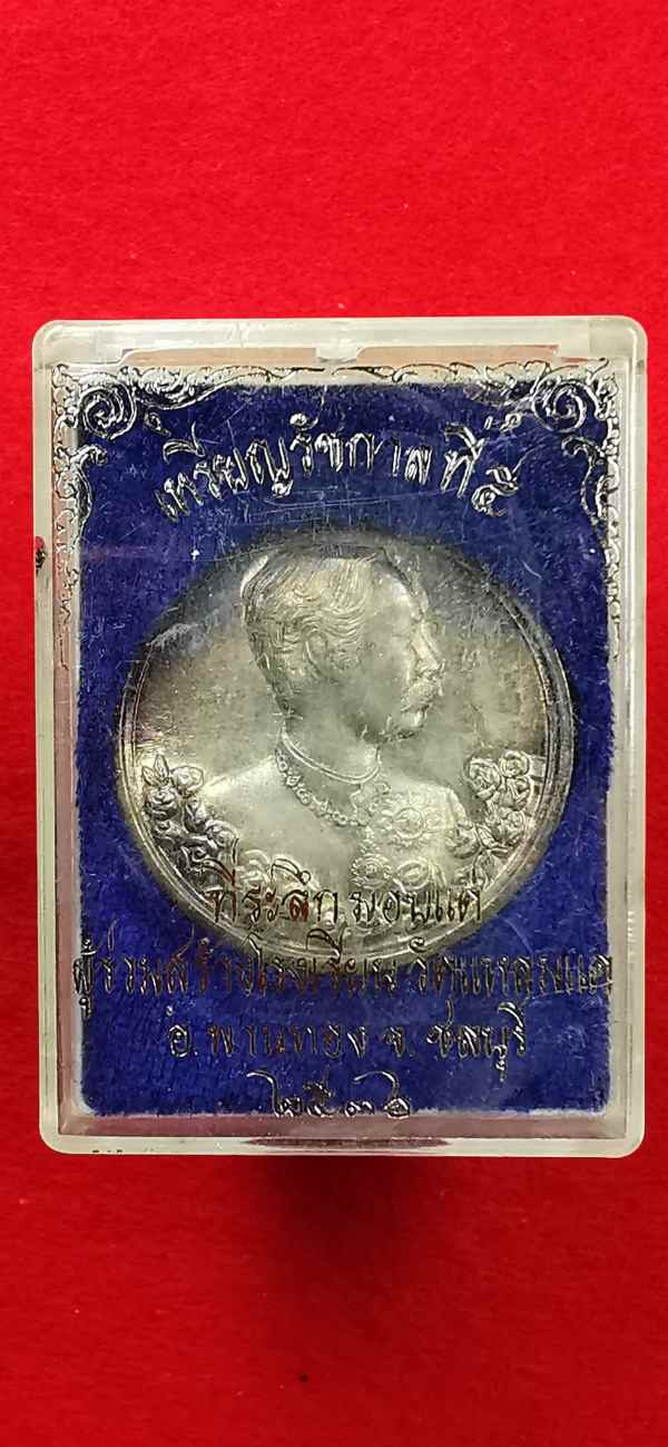 เหรียญรัชกาลที่ 5 วัดแหลมแค ชลบุรี เนื้อเงิน ท่านเจ้าคุณธงชัย วัดไตรมิตรวิทยาราม จัดสร้าง พ.ศ.2536พร้อมกล่องเดิม