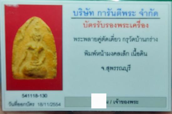พระขุนแผนพรายคู่ตัดเดี่ยว พิมพ์หน้ามงคลเล็ก เนื้อดิน กรุบ้านกร่าง สุพรรณบุรี พร้อมบัตร G-PRA