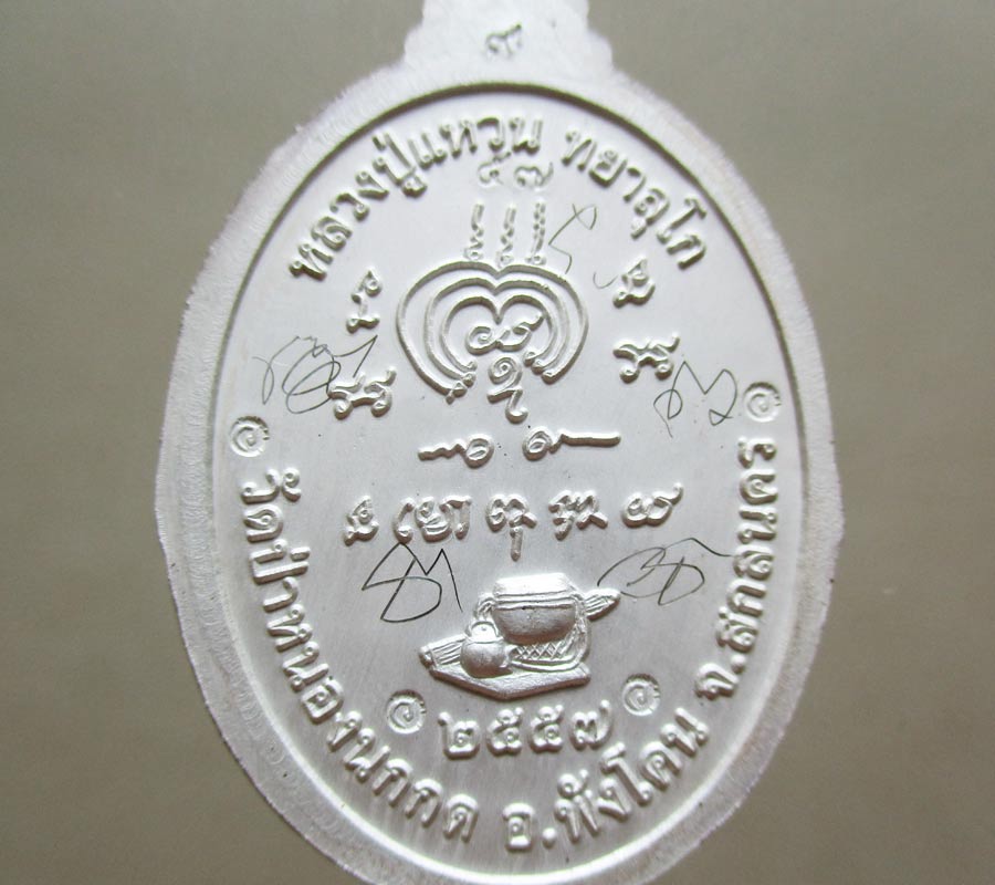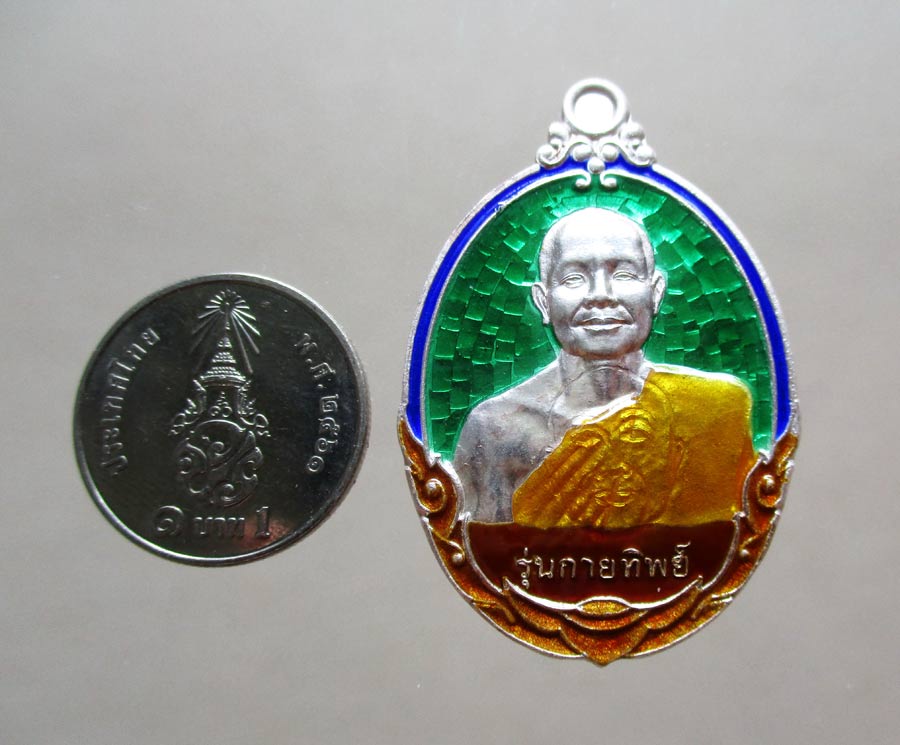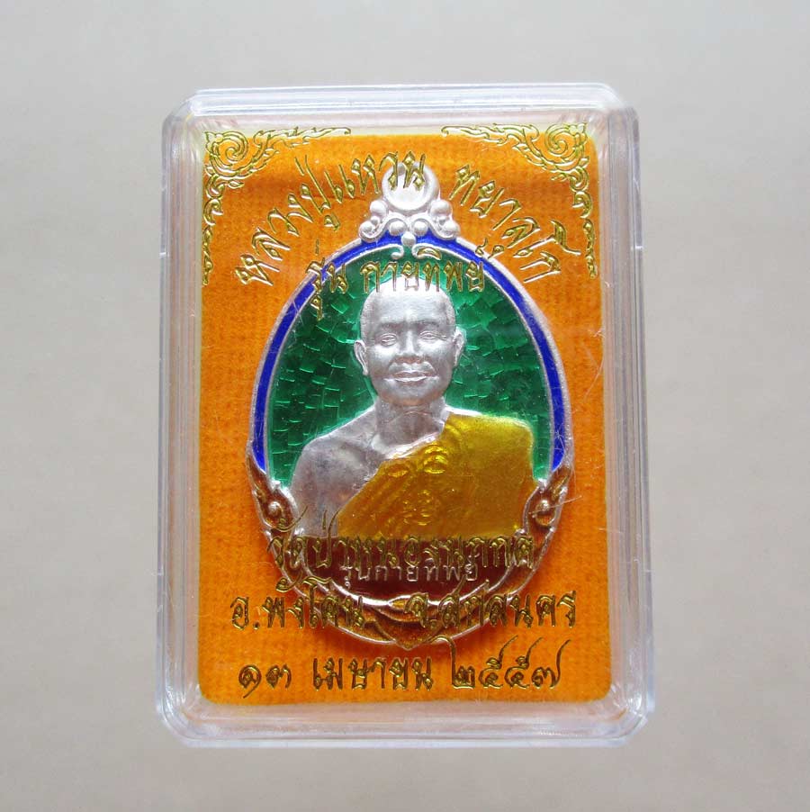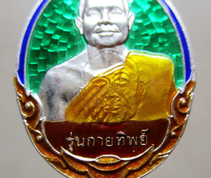 เหรียญ รุ่น กายทิพย์ พระอาจารย์แหวน ทยาลุโก วัดป่าหนองนกกด จ.สกลนคร พ.ศ.2557 เนื้อเงินลงยา 4 สี ตอก 5 โค๊ต ตอกเลข จารยันต์ นอนกล่องเดิม !!