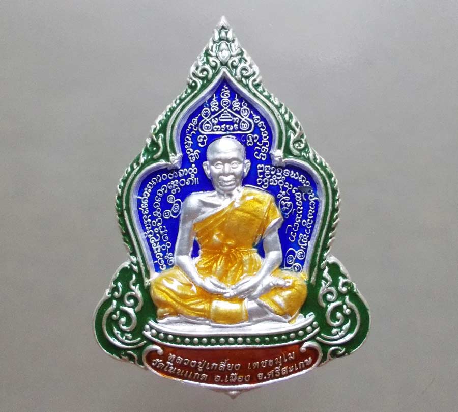 เหรียญรุ่นชินบัญชร หลวงปู่เกลี้ยง เชตธัมโม วัดโนนแกด จ.ศรีสะเกษ พ.ศ.2556 เนื้อเงินลงยาราชาวดี สีน้ำเงิน ตอกโค๊ต ตอกเลข สภาพสวยกริ๊บพร้อมกล่องเดิมๆ !!