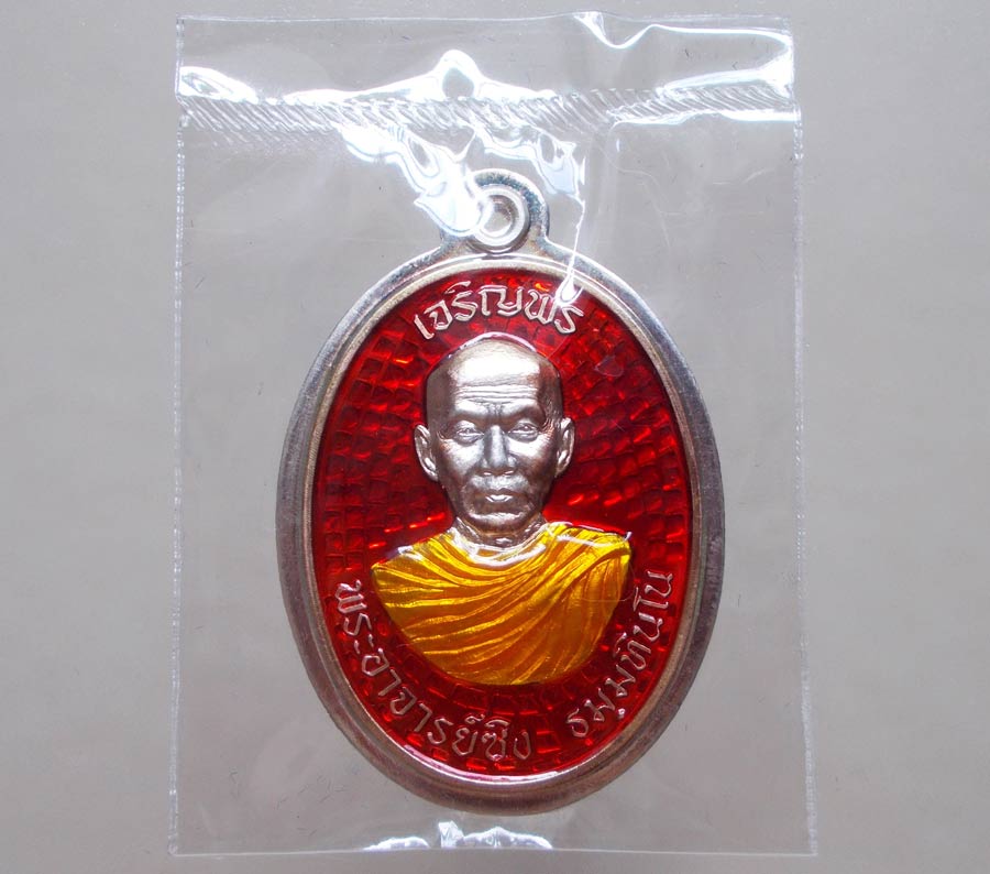 เหรียญ " เจริญพรบน " พระอาจารย์ซิง ธมฺมทินโน วัดไตรมิตร จ.นครพนม พ.ศ.2558 เนื้อเงินลงยาไม่ตัดปีก ตอกโค๊ต ตอกเลข สภาพสวยกล่องเดิมๆ !!