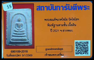 พระสมเด็จเกษไชโย พิมพ์3ชั้น เนื้อดิน ปี2521 อ่างทอง