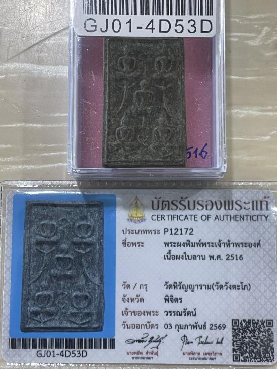 (เคาะแดง2200) +บัตรสมาคม หลวงพ่อเงิน วัดบางคลาน พระเจ้าห้าพระองค์