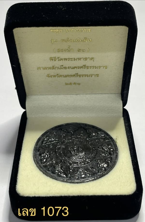 จตุคามรามเทพ รุ่น "พลังแผ่นดิน" (สรงน้ำ 50) เนื้อหยกดำ เลข 1073 วัดพระมหาธาตุฯ จ.นครศรีธรรมราช ปี 2550 สวยๆ พร้อมกล่องกำมะหยี่เดิม