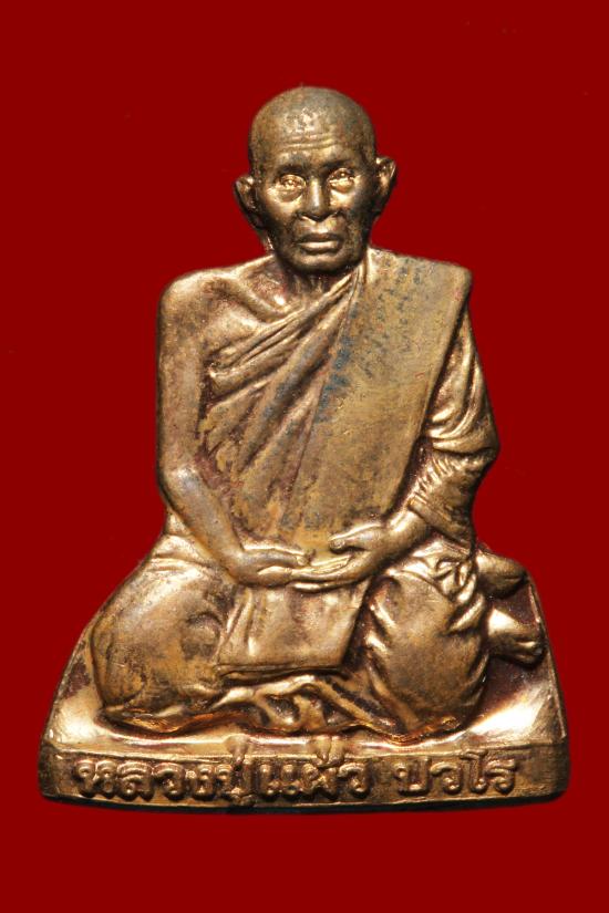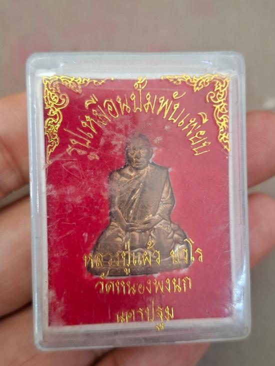 หลวงปู่แผ้ว ปวโร รูปเหมือนปั้มพับเพียบ เนื้อทองแดง ออกวัดหนองพงนก กล่องเดิม |