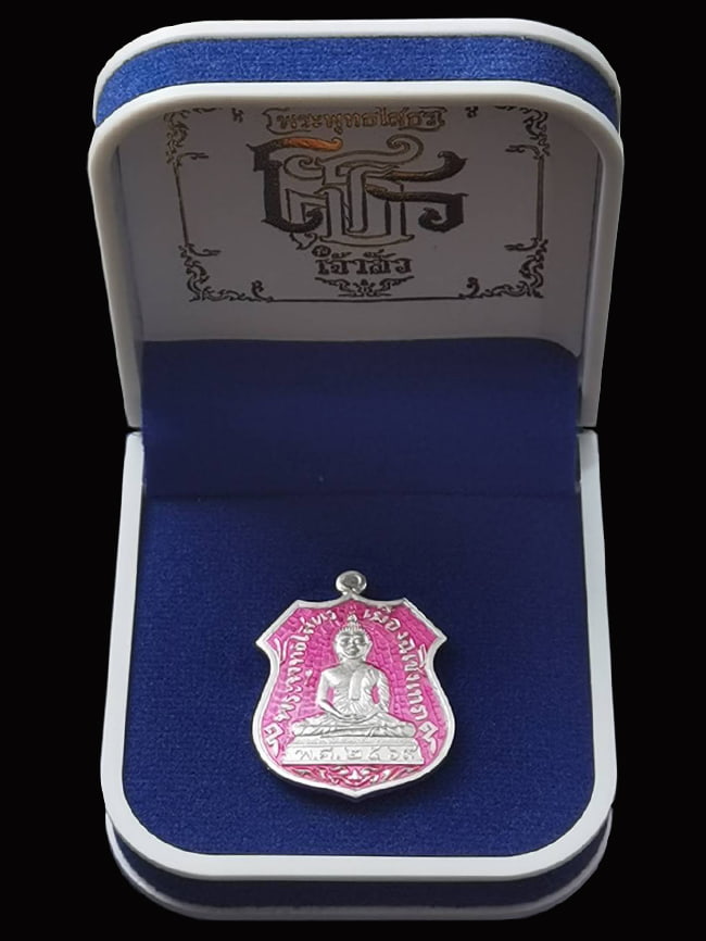 เหรียญหลวงพ่อโสธร รุ่นเจ้าสัว เนื้อชุบเงินด้านลงยาชมพู(หมายเลข 149) ปี2569 กล่องเดิม |