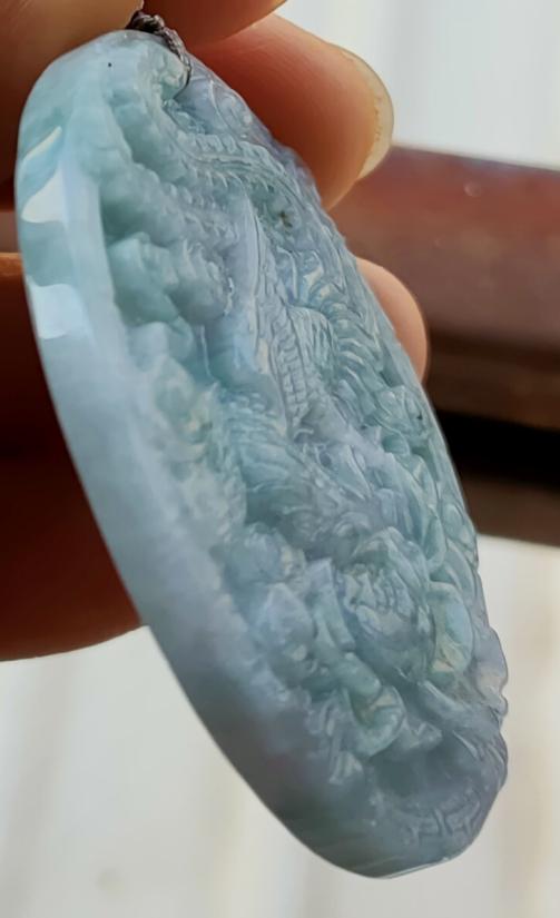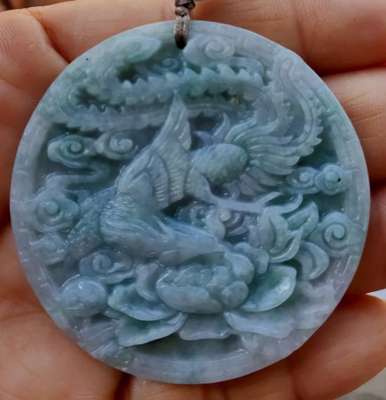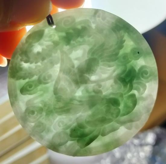 จี้หยกพม่า เนื้อสองสีม่วงเขียว แกะลายนกฟีนิกซ์ สวยๆค่ะ