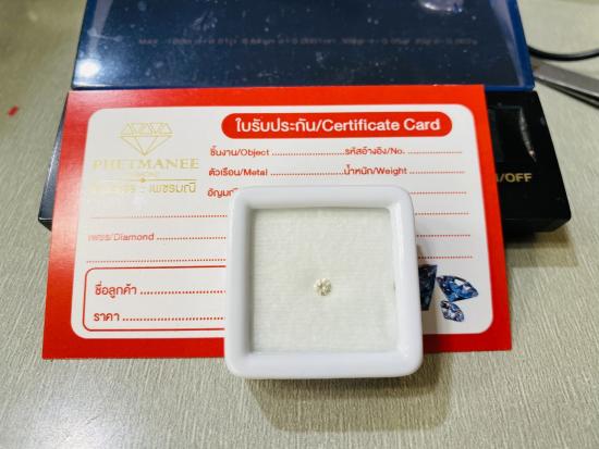 เพชรแท้ธรรมชาติ เหลี่ยมเบลเยี่ยมคัต แกะจากตัวเรือนสินหลุดจำนำ สภาพสมบูรณ์ น้ำหนัก 0.10 กะรัต (10 ตัง 1 เม็ด) น้ำประมาณ ~97-98 VS1