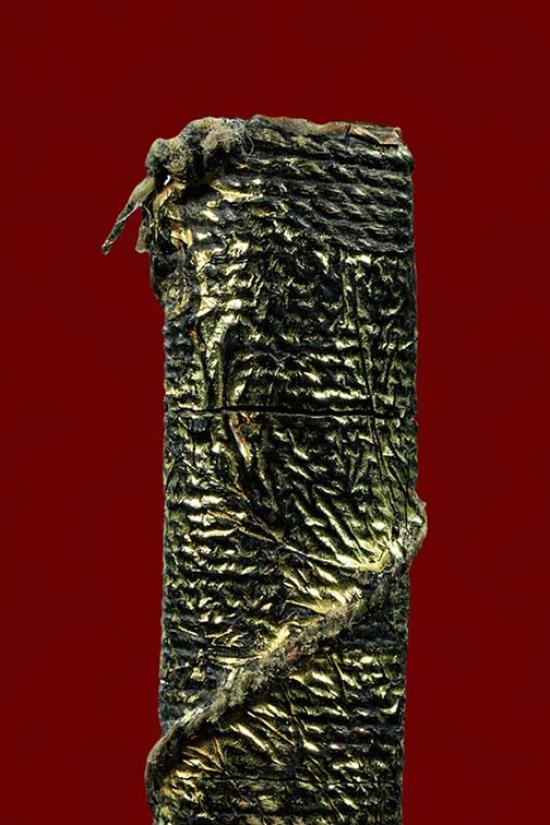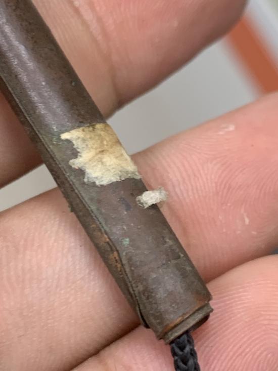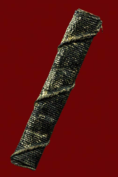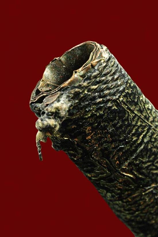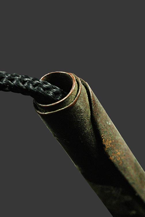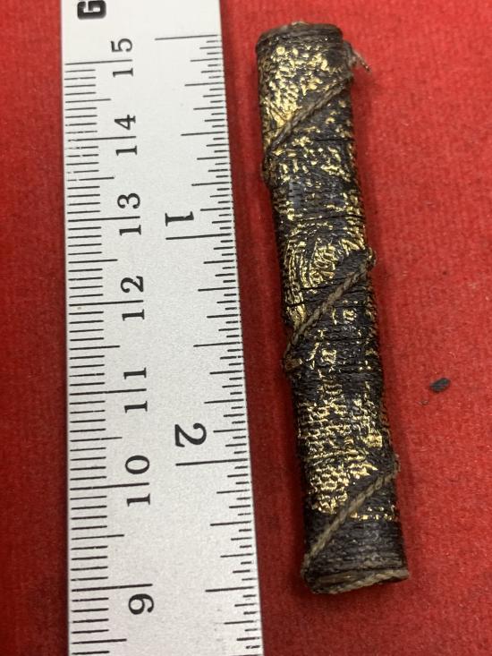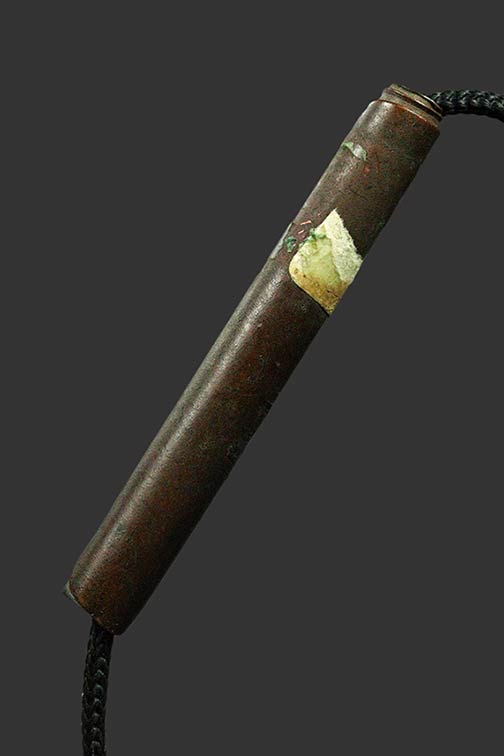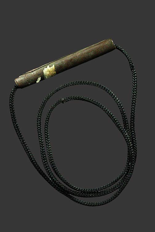 ตะกรุดเนื้อทองแดง ยาว 2. นิ้ว ไม่ทราบที่ กับดอกสีดำยาว 2.5 นิ้ว เก่าไม่ทราบเกจิ
