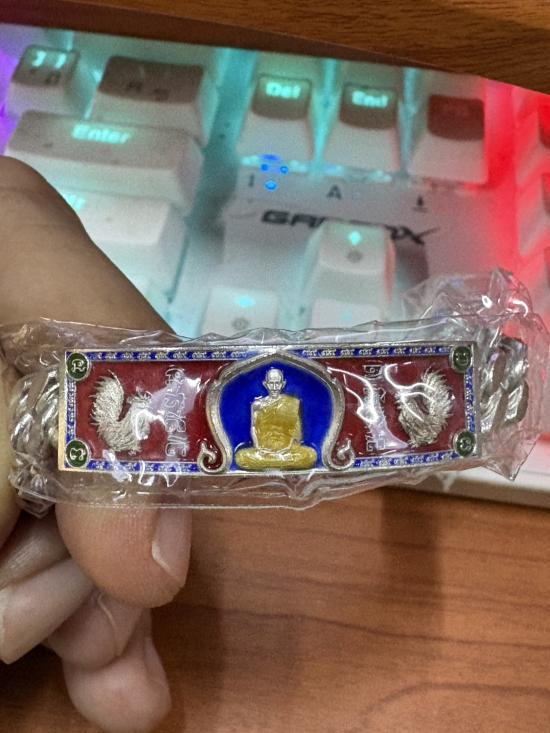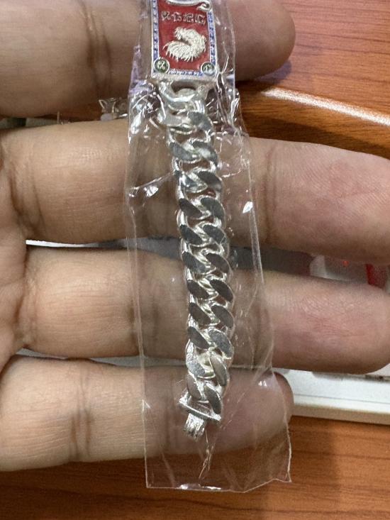 HOT!!! เลสข้อมือเนื้อเงินลงยาแดง ขนาด 2 บาท รุ่น รวย 99 ปี 2563 เลขโค๊ด 18 รวมได้ 9 หลวงพ่อรวย วัดตะโก เคาะเดียวแดง