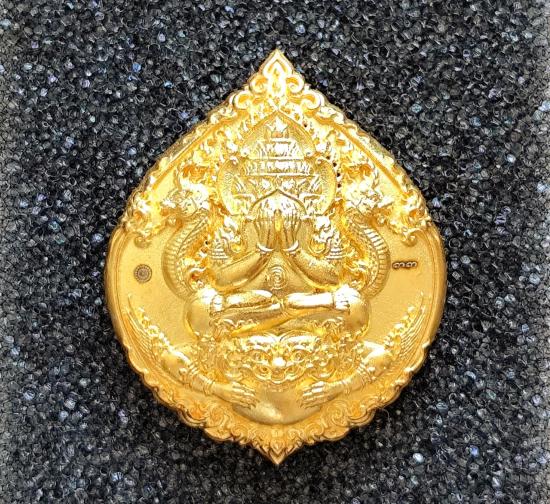 เหรียญหล่อพุทธศิลป์ จตุคาม รุ่นดวงดี159 เนื้อชุบทองลงยาส้ม No.๓๓ พร้อมกล่องเดิม ขนาดเหรียญสูง 2.8 cm.