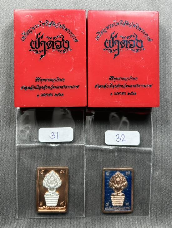 เนื้อทองแดงลงยาสีฟ้า หมายเลข "32"