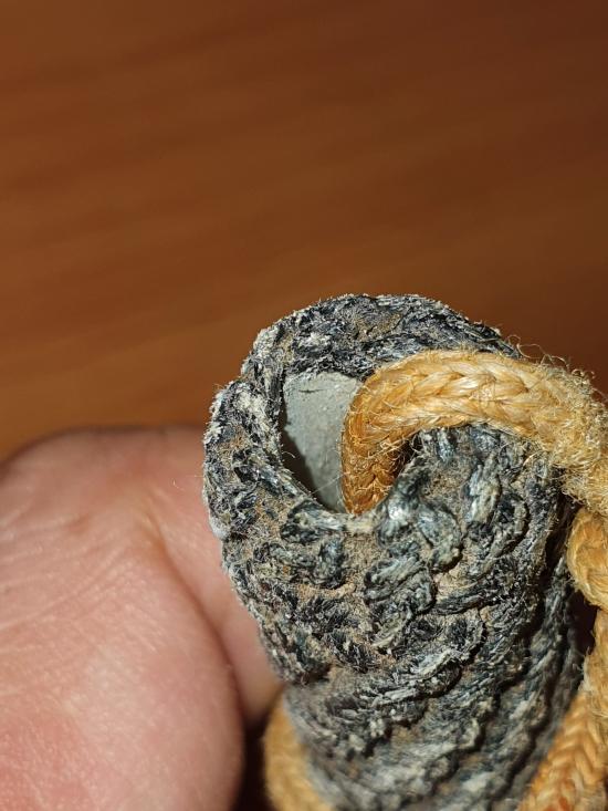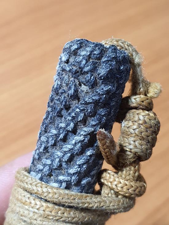 ตะกรุดเนื้อขาปิ่นโตถักเชือก เก่าไม่ทราบที่ขนาด 4 นิ้ว |