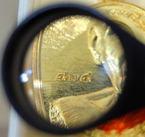 เหรียญ2อาจารย์ หลวงปู่ทวด-หลวงปู่ดู่ รุ่นเจ้าสัวพันล้าน (บอย ท่าพระจันทร์) เนื้อกะไหล่ทองลงยาจีวร โค๊ตเลข ๔๒๔ พร้อมกล่องเดิม